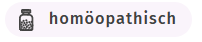| homöopathisch | ![]() | Homöopathisches Arzneimittel: Arzneispezialitäten, die nach den im Europäischen Arzneibuch oder in anderen offiziellen Pharmakopöen des Europäischen Wirtschaftsraums beschriebenen homöopathischen Verfahren aus homöopathischen Ursubstanzen hergestellt werden. |