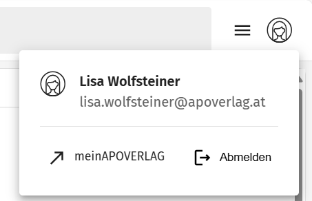 Rufen Sie die Seite mein.apoverlag.at auf und melden Sie sich mit Ihren Zugangsdaten an oder klicken Sie über das Profil Symbol auf meinAPOVERLAG
